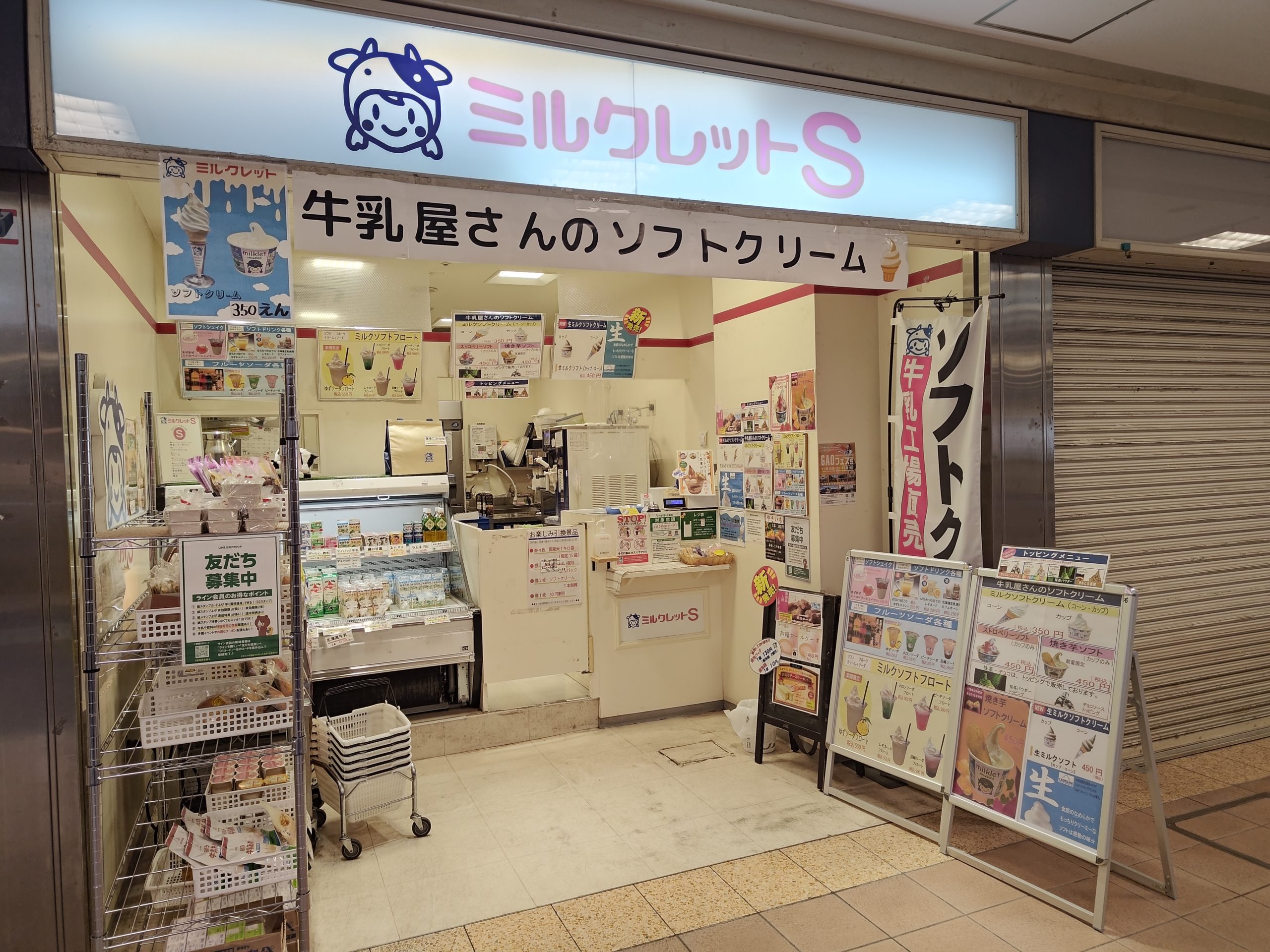 泉ヶ丘ひろば1Fの「ミルクレットS」は、給食でもおなじみ新泉牛乳(泉南乳業)直営の工場直売店。